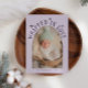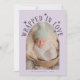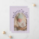 Elegante y moderna tarjeta de anuncios de Navidades temáticos con un texto que dice "envuelto en el amor" con estrellas. ¡Esta es una tarjeta de anuncio de nacimiento para las fiestas! ¡Añade tus fotos, estadísticas de nacimiento y un mensaje! El fondo es morado.