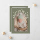 Elegante y moderna tarjeta de anuncios de Navidades temáticos con un texto que dice "envuelto en el amor" con estrellas. ¡Esta es una tarjeta de anuncio de nacimiento para las fiestas! ¡Añade tus fotos, estadísticas de nacimiento y un mensaje! El fondo es verde salvia.
