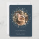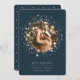 Una elegante tarjeta de invitación de compromiso con una sola foto rodeada de estrellas. "¡Estamos comprometidos!" o su invitación personalizado aparece debajo, junto con sus nombres y detalles adicionales.