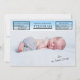 Simplemente hermosa la Invitación perfecta para enviar a todos sus amigos y familia anunciando el nacimiento de su hijo. Presentando una foto en la parte delantera con un overlay azul en la parte superior de la foto con el momento del nacimiento, fecha de nacimiento, libras, pulgadas, onzas y pies de bebé con toda la información del bebé.