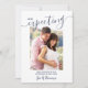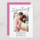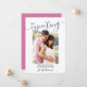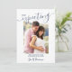 Foto personalizado invitación de embarazo en azul marino neutro y rosa. La plantilla de fotos está configurada para que agregue su propia foto, que se muestra en formato vertical. "Esperar" está escrito en elegante tipografía escrita a mano y el mensaje de invitación de embarazo es completamente editable para usted al personalizar con la fecha de nacimiento y sus nombres. Un diseño minimalista sencillo y moderno para compartir sus maravillosas noticias.
