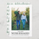 Comparte tu compromiso con tus amigos y familiares con este anuncio de compromiso. La plantilla de bricolaje es fácil de usar. Puedes subir fácilmente una foto de los dos, cambiar los nombres y agregar un mensaje personalizado. A la gente le encantará ver a los dos juntos. La parte trasera tiene un patrón geométrico abstracto de triángulos deteriorados. Puede evocar imágenes de árboles de Navidad durante las fiestas. Puedes simplemente eliminarlo, si deseas un look minimalista más limpio y simple. Envíame un mensaje (soy Nelda) si necesitas ayuda. ¡Felicidades por tu compromiso!
