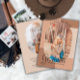 Diseño de bloques de color retro en tonos de terracota desierta muda con fotos de rectángulos oblongos curvos en la parte delantera y trasera y la palabra "Graduado" en texto de guión (ineditable) en la parte delantera debajo de la foto. Diseño compuesto por Holiday Hearts Designs (derechos reservados) con fotos de marcadores de posición de plantilla a través de Unsplash.