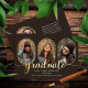 Fotos clásicas y únicas oblongas de diseño de invitación de graduación de collage de 4 fotos con plantillas de fotos en tonos dorados y texto de escritura de tono dorado "graduado". Añade el nombre del graduado, el año de clase y el colegio al frente junto con tres fotos y agrega una foto y invitación completa por separado en la parte de atrás. Diseño original de Holiday Hearts Designs con fotografía de la plantilla de marcador de posición, cortesía de Omid Armin via Unsplash.