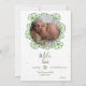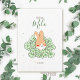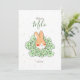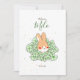 Faire-part naissance lapin mignon en illustration avec fleurs à l'avant pour informer votre famille et vos amis de l'arrivée de bébé! De l'autre côté, il suffit de remplacer l'exemple d'image par votre photo préférée de votre nouveau-né et de personnaliser le texte des deux faces avec vos propres détails.