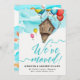 Anuncie su movimiento con estilo con esta sencilla, moderna y colorida tarjeta de invitación móvil familiar. La parte delantera cuenta con un encantador ilustracion acuático colorido de una fantástica casa rústica volando, mientras que la parte trasera exhibe un tranquilo cielo azul turquesa de acuarela. El texto está escrito en una elegante caligrafía negra, añadiendo un toque elegante al diseño. Ambos lados de la tarjeta están en personalizable con sus nombres y dirección, por lo que es fácil compartir sus nuevos datos de la casa con sus amigos y familiares. Esta invitación linda y creativa es la manera perfecta de hacer saber a todos sobre su cambio de dirección. Disponible tanto en formato de impresión como de descarga digital, ¡pida el suyo hoy mismo!