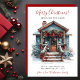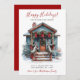 Esta rústica acuarela Happy Holidays nueva casa para las vacaciones con tarjeta de invitación con una puerta de madera decorada festivamente con ramos de pino y árboles, una corona y arcos rojos de vacaciones sería perfecta para enviar a tus amigos y familia ahora que te has mudado a una nueva casa. El sentimiento es personalizable. Consigue lo suficiente para que todos los que conoces y amas tengan tu nueva dirección. ¡Estarán tan emocionados por tu gran movida!