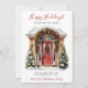 Esta acuarela Happy Holidays nueva casa para las vacaciones con tarjeta de invitación con una puerta roja decorada de forma festiva con ramos de pino y árboles, una corona y arcos rojos de vacaciones sería perfecta para enviar a tus amigos y familia ahora que te has mudado a una nueva casa. El sentimiento es personalizable. Consigue lo suficiente para que todos los que conoces y amas tengan tu nueva dirección. ¡Estarán tan emocionados por tu gran movida!