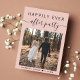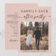 Moderno dispositivo rosa rubor o menor invitación boda e invitación a la recepción para informar a la familia y amigos de que usted se casó en una pequeña ceremonia boda íntima, y ahora invitarlos a una boda. La parte delantera incluye la foto del día de la boda y "Feliz eterno después del Fiesta" en una mezcla de tipografía simple y un guión moderno con toques. Bajo su foto puede añadir sus nombres y fecha de boda. En el reverso, personaliza tu mensaje con más detalle y agrega detalles de la invitación de fiesta o recepción y tus nombres en un guión tipo firma.