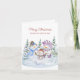Tarjeta de navidades de tu nuevo hogar. La frase dice "Feliz Navidad desde nuestro nuevo hogar" y puedes agregar tu saludo personalizado de navidades y nueva dirección en el interior. Este diseño acuático cuenta con 3 preciosos hombres de nieve con un telón de fondo de árboles de navidad.