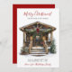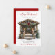 Esta rústica acuarela Feliz Navidad nueva casa para las vacaciones tarjeta de invitación con una cabaña de madera decorada festivamente en la puerta principal con ramos de pino y árboles, una corona y arcos rojos de vacaciones sería perfecto para mandar a sus amigos y familia ahora que se ha mudado a una nueva casa. El sentimiento es personalizable. Consigue lo suficiente para que todos los que conoces y amas tengan tu nueva dirección. ¡Estarán tan emocionados por tu gran movida!
