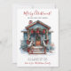 Esta rústica acuarela Feliz Navidad nueva casa para las vacaciones tarjeta de invitación con una puerta de madera decorada festivamente con ramos de pino y árboles, una corona y arcos rojos de vacaciones sería perfecto para mandar a sus amigos y familia ahora que se ha mudado a una nueva casa. El sentimiento es personalizable. Consigue lo suficiente para que todos los que conoces y amas tengan tu nueva dirección. ¡Estarán tan emocionados por tu gran movida!