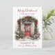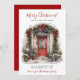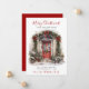 Esta acuarela Feliz Navidad nuevo hogar para las vacaciones tarjeta de invitación con una puerta de entrada roja decorada de forma festiva con arbustos de pino y árboles, una corona y arcos rojos de vacaciones sería perfecto para mandar a tus amigos y familia ahora que te has mudado a una nueva casa. El sentimiento es personalizable. Consigue lo suficiente para que todos los que conoces y amas tengan tu nueva dirección. ¡Estarán tan emocionados por tu gran movida!