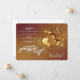 Fiesta de aniversario dorado número 50 (Versión 2) por Multiform, presenta un arreglo elegante de corazones de oro tridimensionales sobre un fondo de rayos de luz radiante. Este diseño moderno es parte de una serie que se puede personalizar fácilmente con su fecha, hora, ubicación, confirmación de asistencia y sitio web del registro de bodas.