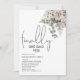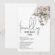 Una invitación de fiesta de compromiso diseñada de forma moderna y minimalista, con un arreglo de rosas blancas marfil, sobre una cama de hojas de eucalipto, fuente script que dice 'FINALMENTE' y ella dijo que sí. Con una plantilla de invitación moderna, todos los demás estilos, tamaños y colores de texto se pueden cambiar haciendo clic en el enlace personalizar más después de personalizar.
