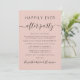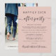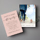 Anuncio elegante de color rosa para su fuga o boda privada junto con una invitación a una recepción o fiesta de celebración. En la parte delantera, "Happily Ever After Party" está escrito en tipografía moderna simple y una escritura elegante con florituras; personalice el anuncio de su boda e invitación y agregue sus nombres en una escritura similar a una firma. El reverso presenta su foto de boda, nombres y fecha de la boda.