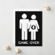 Los símbolos universales del hombre y la mujer, tomándose de la mano, la mujer mostrando un útero/feto, y con la leyenda "Juego sobre". Diseño B/W, en camisetas, sudaderas, tarjetas, regalos.
