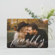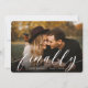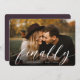 Anuncie su compromiso con estas bellas y minimalistas tarjetas de purga completa con una foto horizontal o orientada al paisaje con "finalmente" colocado en letras manuscritas blancas. Personalice su invitación, nombres y detalles adicionales.