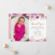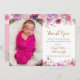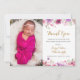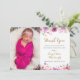 Presentando su foto de bebé y las delicadas guirnaldas de rosas de acuarela por encima y por debajo de su mensaje especial de agradecimiento de invitación para bebés. El fondo rosado inverso se puede cambiar a tu color favorito o añadir detalles adicionales. Diseñado por Thisisnotme©