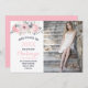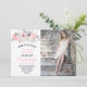 Esta invitación a la fiesta de graduación femenina tiene un encantador diseño floral con flores rosas y melocotones, bayas pequeñas y hojas verdes suaves dispuestas en la parte superior. El lado izquierdo de la postal incluye el texto mostrado en una elegante mezcla de fuentes: estilos sofisticados serif, graceful cursive scripts y fuentes limpias sans-serif. El texto está diseñado en colores armoniosos como el negro, el rosa y el melocotón. El lado derecho de la postal está reservado para una foto personal. La postal combina tonos suaves y un diseño atento para crear una estética delicada y personalizada.