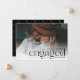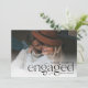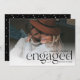 Anuncie su compromiso con estas hermosas y minimalistas tarjetas de purga completa que presentan una foto horizontal o orientada al paisaje con "enganchado" sobre letras negras acentuadas con estrellas. Personalice sus nombres e indique que le seguirán los detalles del boda.