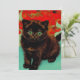 Tarjeta con un gato negro y flores rojas al estilo Van Gogh. Este gatito de bonito posa adorablemente con flores rojas. ¡Un regalo fabuloso para los amantes del gato y para los coleccionistas holandeses de arte!