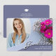 Una tarjeta única de invitación para graduación de fotos personalizado, que incluye elementos de diseño de un elegante guión de estilo manuscrito con texto moderno. La foto de los graduados está realzada por hermosas flores rosas y blancas en tonos azul polvoriento. La parte posterior de la tarjeta ofrece espacios de texto personalizados para obtener información sobre la graduación y el viaje futuro. Puede personalizar fácilmente los colores primarios y de texto en la parte posterior de la tarjeta para que se ajusten a sus necesidades. Para ver más artículos como este, visita mi tienda aquí en "www.Zazzle.com/LakeViewCardCo". ¡Gracias