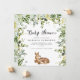 Follaje acuático y invitación a la ducha de bebé en bosques de venado. Ilustraciones acuarelas y texto con letras a mano. Parte de una colección.