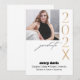 Moderno y simple fondo blanco con foto y tarjeta de invitación de graduación con acento dorado - sólo agrega tu foto, el último dígito del año, nombre y detalles de la escuela.