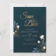 Un anuncio formal y elegante de reserva de fecha con letras doradas y flores blancas sobre un fondo oscuro. La tarjeta es fácil de personalizar con su texto, fuente y color de fuente. ¿No es exactamente lo que está buscando? Todos nuestros productos pueden ser diseñados a medida para satisfacer sus necesidades sin cargo adicional. Simplemente contáctenos en askpixieprints@aol.com. Productos coordinados disponibles a su solicitud.