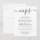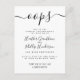 ¡Ups! Vivimos en tiempos increíbles. No te preocupes cuando las cosas se pongan cuesta arriba. ¡Es hora de cambiar de rumbo! Necesitarás un espacio para recuperarte, adaptarte y encontrar formas creativas de reprogramar y quizás incluso reinventar tu día especial. ¡Estamos contigo! Estas tarjetas de posposición de eventos en blanco y negro atemporales incluyen un mensaje de texto fijo en una tipografía de letra cursiva elegante con una fuente de bloque sans serif moderna para tu mensaje. Ideal para cualquier ocasión que necesites retrasar o reprogramar. Haz saber a tus invitados que necesitas posponer el evento sin perder tu compostura con este diseño clásico. No te desanimes. Ahora tienes tiempo para hacer que tu nueva celebración sea aún más como siempre has querido que sea.