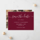 Cree una hermosa foto de un boda burdeos, guarde la tarjeta de fecha con un elegante tipo de letra de guión. Personalice fácilmente esta boda fotográfica, guarde la tarjeta de fecha con su imagen y los detalles del boda.