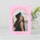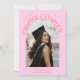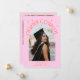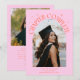 Tarjeta de foto de anuncio de graduación moderna y caprichosa con una foto con marco arqueado en la parte frontal y 1 en la parte posterior. El texto dice "Capítulo completo" con estrellas dibujadas a mano. Agregue el nombre del graduado, información y mensaje para personalizar esta tarjeta. Fondo rosa naranja.