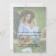 Este anuncio de foto de arco de graduación de caligrafía caprichosa presenta un hermoso boceto de acuarela pintado a mano de un graduado desde una perspectiva trasera. El diseño destaca un elegante birrete negro adornado con un delicado borde de perlas blancas y un impresionante lazo de tela de gran tamaño con largas colas fluidas. Para completar el look, el graduado sostiene un exuberante ramo de rosas blancas cremosas.
