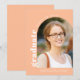 Una simple tarjeta de anuncio de graduación de melocotón blanco moderno para celebrar al nuevo graduado de secundaria. El diseño presenta tu foto favorita enmarcada dentro de un arco con tipografía en negrita. Personaliza con tu nombre y escuela secundaria.