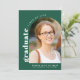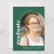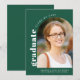 Una tarjeta de anuncio de graduación simple moderna verde y blanca para celebrar al nuevo graduado de secundaria. El diseño presenta tu foto favorita enmarcada dentro de un arco con tipografía en negrita. Personaliza con tu nombre y escuela secundaria.