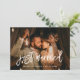 ¿Decidiste irte? ¿Quieres anunciar que acabas de casarte? Comparte la noticia de tu matrimonio con esta preciosa tarjeta de fotos boda, letra y colores completamente personalizable.