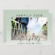 Invitación de boda o anuncio de boda privada o elopement chic verde sage para la recepción de la boda o la fiesta de celebración. La parte delantera presenta su foto, "Fiesta Happily Ever After" en tipografía simple y un guión moderno con florituras, y sus nombres y fecha de la boda. En el reverso, puede personalizar el anuncio de su matrimonio y la invitación con más detalle y agregar sus nombres en un guión similar a una firma.