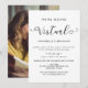 Las características modernas de la foto anuncio de boda virtual una sola foto en la parte posterior y detalles de la boda en la parte delantera. Este anuncio clásico en blanco y negro es perfecto para notificar a familiares y amigos de su próxima ceremonia de matrimonio.