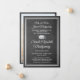 Comparte la alegría de una graduación de secundaria o universitaria con estas invitaciones de pizarra de fotos personalizados en blanco, negro y plata. (IMAGEN PLACEMENT TIP: Una manera fácil de centrar una imagen exactamente como se desea es recortarla antes de subirla al sitio web de Zazzle.) Esta plantilla de estilo formal incluye los nombres de los padres y de los graduados, así como cualquier texto de su elección, como detalles de invitación de partido, honores especiales, título de grado, cita inspiradora favorita, información de contacto de graduados, planes de educación futuros o nueva posición laboral. Todo el texto es sencillo de personalizar. El diseño presenta un falso fondo negro de pizarra, un falso borde de Relieve metalizado plateado y gorro de mesa de mortero, una elegante caligrafía de escritura, tipografía tradicional y una foto de su elección, como una imagen superior o de la ceremonia de inicio. Tenga en cuenta que la plata es color impreso, no Relieve metalizado metálico. Estas tarjetas de invitación de graduación son una manera moderna y moda de compartir tu celebración especial del día con familiares y amigos. ¡Felicitaciones al graduado!
