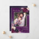 Flores románticas en tonos de burgundy intenso, lila suave, morado berenjena intenso y orquídea rosada se combinan con elementos botánicos verdes modernos como helechos y eucalipto. Un fondo de acuarela de color morado berenjena intenso lo une todo con tipografía moderna y elegante en estas tarjetas de foto para guardar la fecha de la boda.