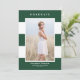 Anuncia tu graduación con esta invitación de graduación personalizable. Cuenta con un patrón de rayas verdes y blancas. Personaliza esta moderna invitación de graduación agregando una foto, nombre, escuela, año y otros detalles. Esta tarjeta de anuncio de graduación con foto está disponible en otras cartulinas.