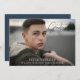 Caligrafía moderna, superposición de foto de escritura negra, invitación de graduación de fotos. Se puede personalizar el color de respaldo que se muestra en azul marino.