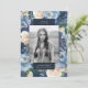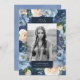 Esta invitación de graduación rodea una elegancia suave. Flores de acuarela azul y turbia caen en cascada alrededor de la foto de un grad, sus suaves tonos recuerdan a un ocaso de verano. El toque perfecto para anunciar tu graduación con un ambiente romántico y etéreo.