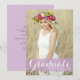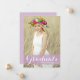 Anuncia tu graduación a familiares y amigos con esta tarjeta de graduación personalizable. Cuenta con caligrafía blanca moderna sobre un splash de acuarela púrpura. Personaliza esta tarjeta de anuncio de graduación de caligrafía agregando tu foto, nombre y nombre de la escuela. Esta tarjeta de anuncio de graduación con foto es perfecta para graduaciones de secundaria o universidad.