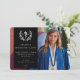 Una invitación fotográfica de graduación formal pero moderna para celebrar las calificaciones profesionales de enfermería. Presenta una foto de color con una cubierta de color y el símbolo Asclepius (con la abreviatura "RN") rodeado de una corona de laurel. El texto de la plantilla para los detalles del graduado es completamente personalizable, por lo que se puede cambiar el tamaño del tipo de letra, el estilo, el color y la ubicación. La parte posterior presenta un fondo de color sólido y un texto de plantilla para un mensaje más largo. Si prefiere no incluir texto en la parte posterior, sólo debe eliminarlo antes de realizar el pedido. Si prefiere una foto en la parte posterior de la tarjeta, elimine el fondo coloreado y el texto de la plantilla y cargue su propia foto. El diseño está disponible en otros colores y con diferentes calificaciones médicas en mi tienda.