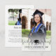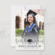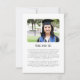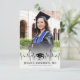 Esta tarjeta de anuncio de graduación presenta un diseño audaz con un fondo de foto y un gradiente blanco en la parte inferior. La parte inferior muestra una ilustración de un gorro de graduación, seguida del nombre del graduado, el nombre de la escuela y la fecha. El diseño moderno pero atemporal combina el tono de celebración del gorro de graduación con detalles personalizados, lo que lo hace perfecto para anunciar el logro de cualquier graduado.