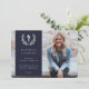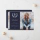 Una invitación fotográfica de graduación formal pero moderna para cualquier tipo de calificación médica. Presenta una foto de purga completa con un overlay color y el símbolo caduceus rodeado de una corona laurel. El texto de la plantilla para los detalles del graduado es completamente personalizable, por lo que se puede cambiar el tamaño del tipo de letra, el estilo, el color y la ubicación. La parte posterior presenta un fondo de color sólido y un texto de plantilla para un mensaje más largo. Si prefiere no incluir texto en la parte posterior, sólo debe eliminarlo antes de realizar el pedido. Si prefiere una foto en la parte posterior de la tarjeta, elimine el fondo coloreado y el texto de la plantilla y cargue su propia foto. El diseño está disponible en otros colores y con diseños para cualificaciones médicas específicas (MD, RN, DO) en mi tienda.