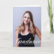 Graduado está escrito en elegante letra cursiva blanca sobre la foto de su retrato de último año hace una hermosa y minimalista tarjeta de anuncio de graduación. Personalice con su nombre y escuela secundaria o clase universitaria de 2025 debajo de la tipografía cursiva y agregue sus datos personales en el interior de estas elegantes tarjetas de graduado con superposición de texto. Agregue una segunda fotografía dentro