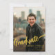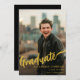Celebra la graduación universitaria, universitaria o de secundaria de tu hijo con esta elegante tarjeta de invitación de graduación de fotos de grado negro y oro. Con una moderna caligrafía de escritura dorada y una plantilla de fotografía de grado, este diseño capta la emoción de nuevos comienzos y celebración alegre. Personalízalo con una preciada foto de tu graduado usando la plantilla de fotos fácil de usar, y resalta los detalles de los eventos en una tipografía impresionante. Diseñada por la artista Catherine Sweetman, esta invitación única combina el estilo con la emoción del logro de su hijo, lo que lo convierte en la forma ideal de reunir a sus seres queridos y marcar este hito especial.